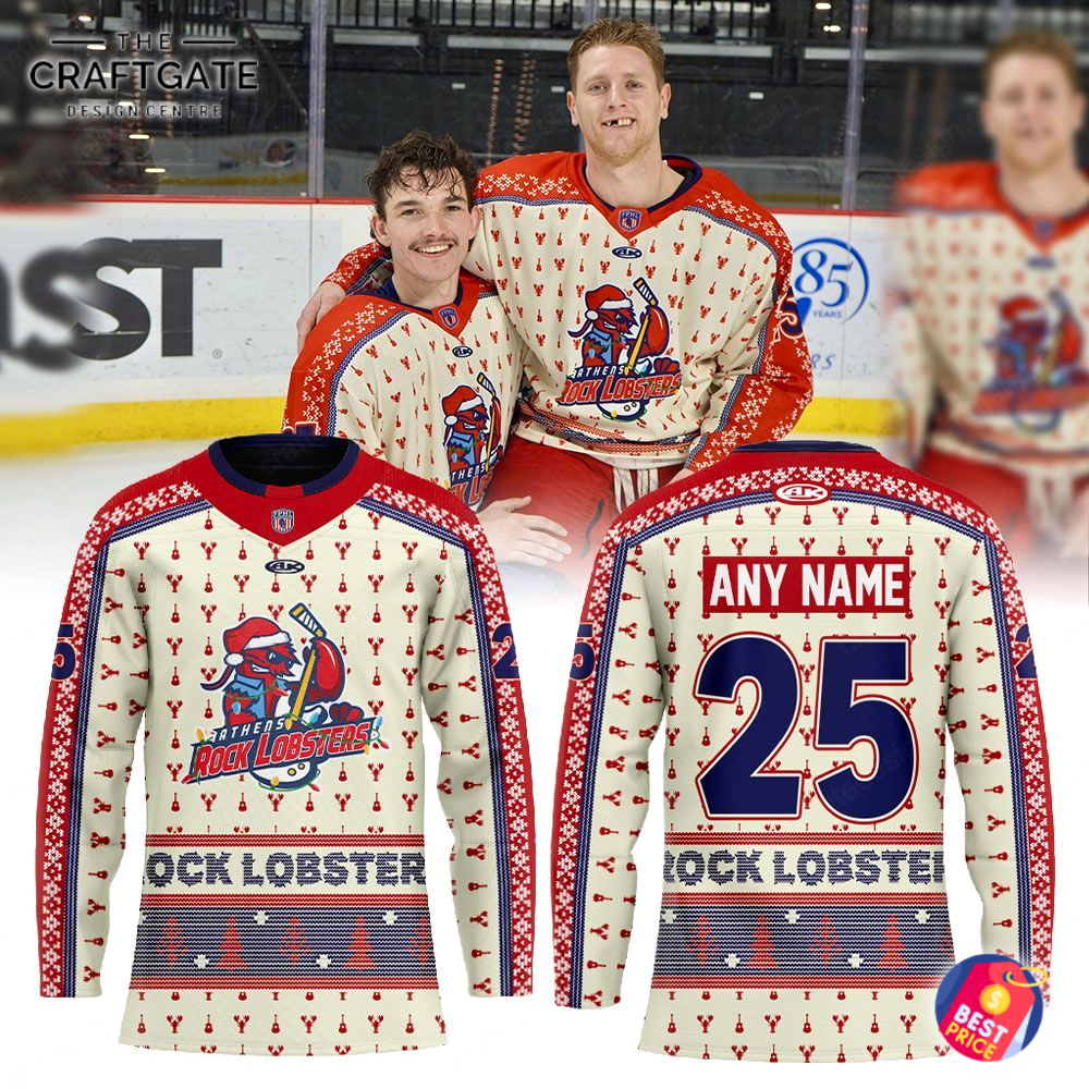 Official Limited Edition Athens Rock Lobsters x Merry Christmas Hockey Jersey – Celebrate the Season in Style