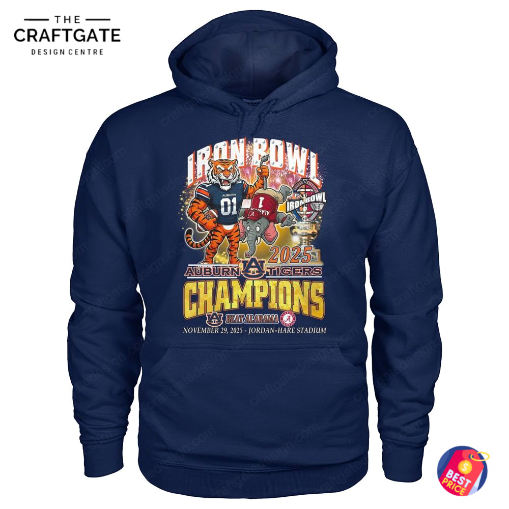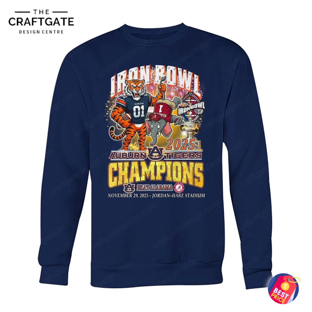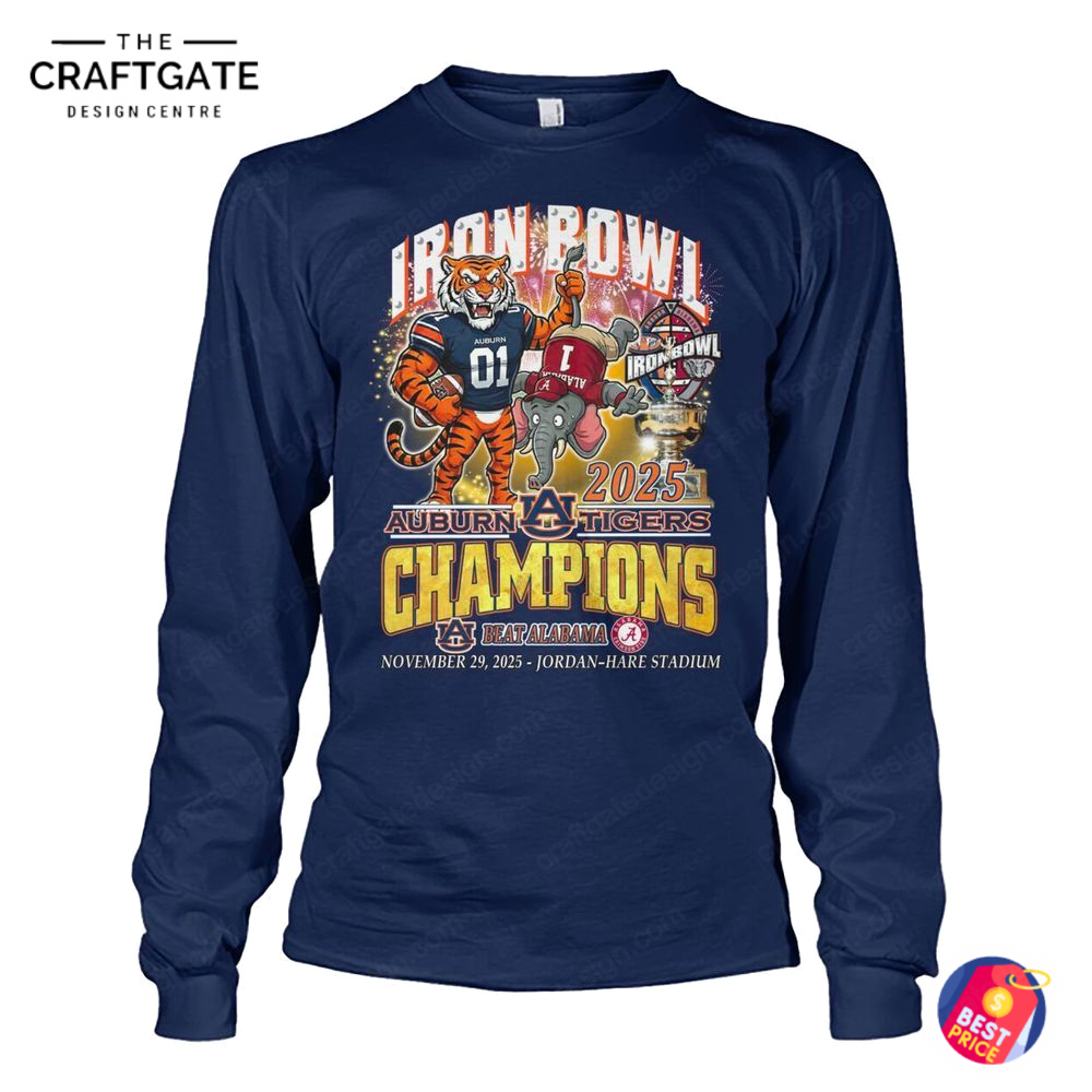 Ideal for game days, campus life, tailgates, or proudly showcasing in a fan collection, this shirt honors Auburn’s historic football tradition and its fierce Iron Bowl legacy. Officially licensed for authentic champion merchandise, it includes easy machine-wash care for long-term quality. Whether you’re celebrating the rivalry victory or adding to your Tigers memorabilia, the Auburn Tigers 2025 Iron Bowl Champions T-Shirt is a standout must-own piece. Limited quantities available—secure yours today before it sells out. Backed by a full quality guarantee and hassle-free return policy.