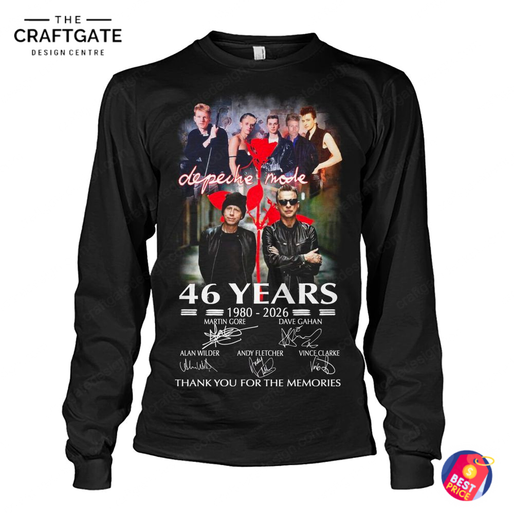 Celebrate legacy, emotion, and decades of groundbreaking sound with the Depeche Mode 46 Years Thank You For The Memories T-Shirt, a heartfelt tribute for fans who have lived every era of the band’s journey. This T-shirt opens with a strong emotional connection, honoring 46 years of influence with a bold front design featuring “46 Years – Thank You For The Memories” typography blended with classic Depeche Mode–inspired visuals, while the back is finished with clean, minimalist elements that keep the focus timeless and respectful. Presented in a dark, iconic color palette, it’s crafted from premium cotton or a high-quality cotton-blend fabric, offering lightweight breathability, a soft hand feel, durable stitching, and a comfortable unisex fit.