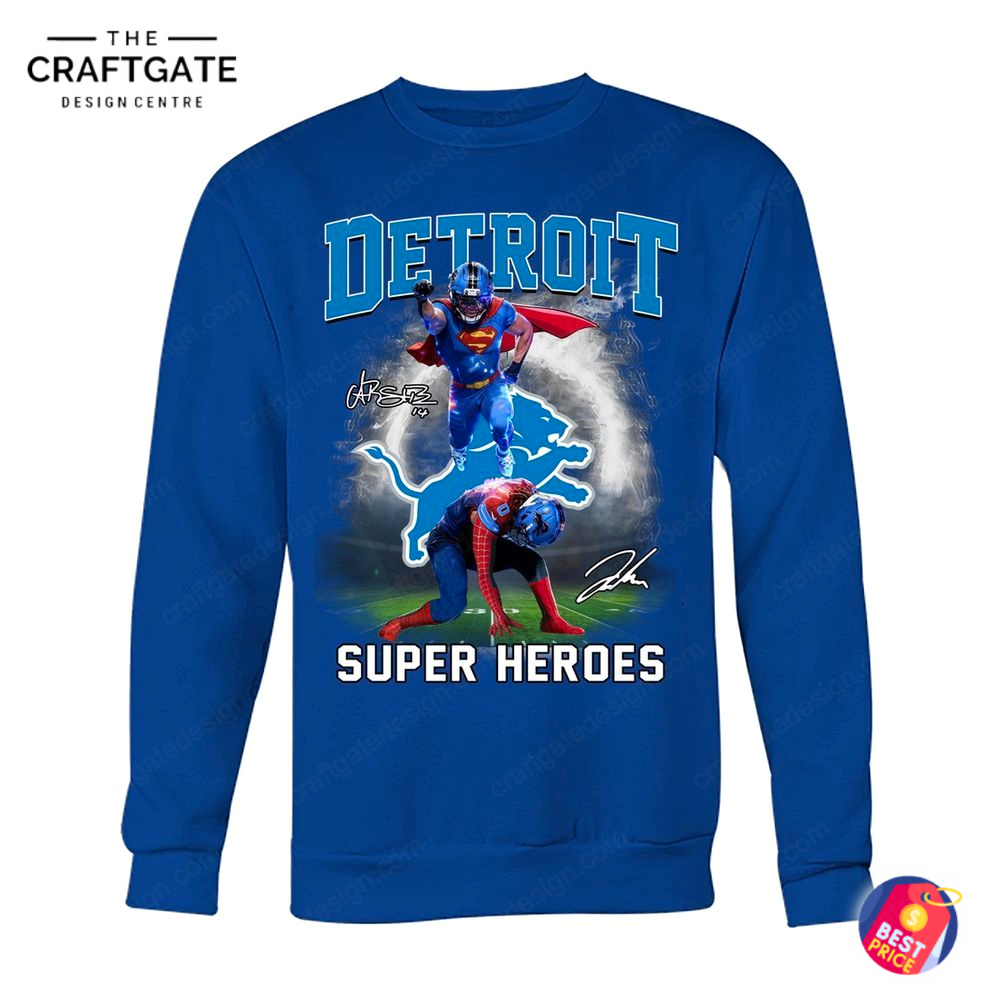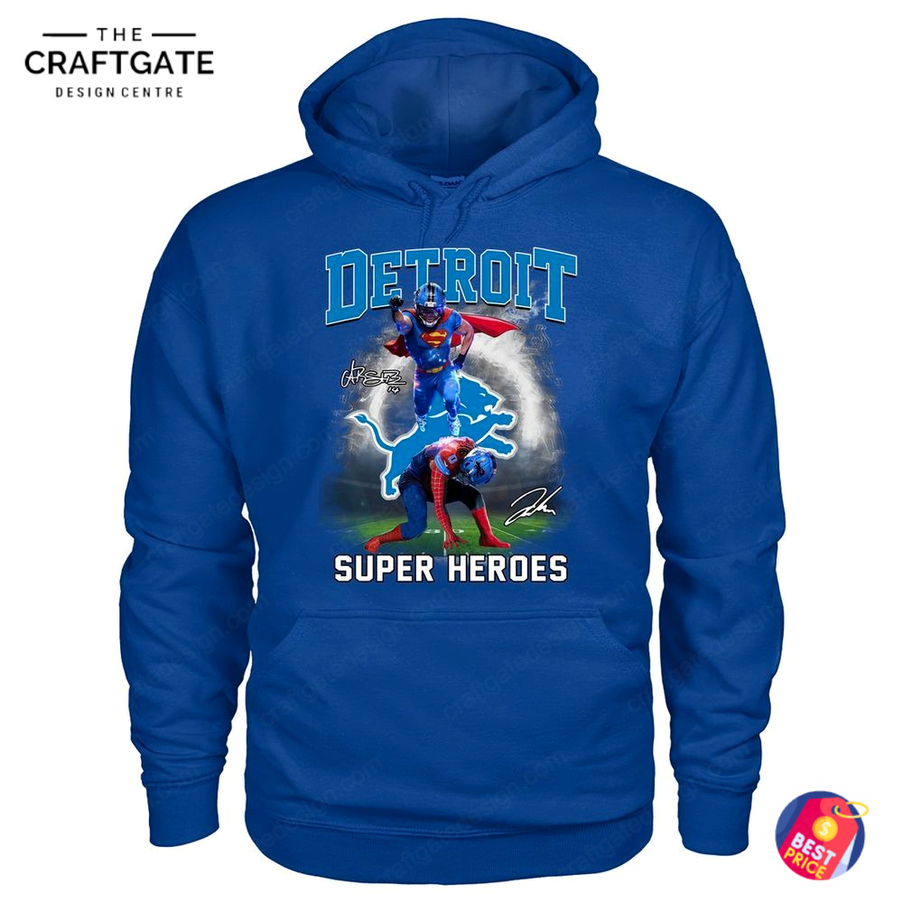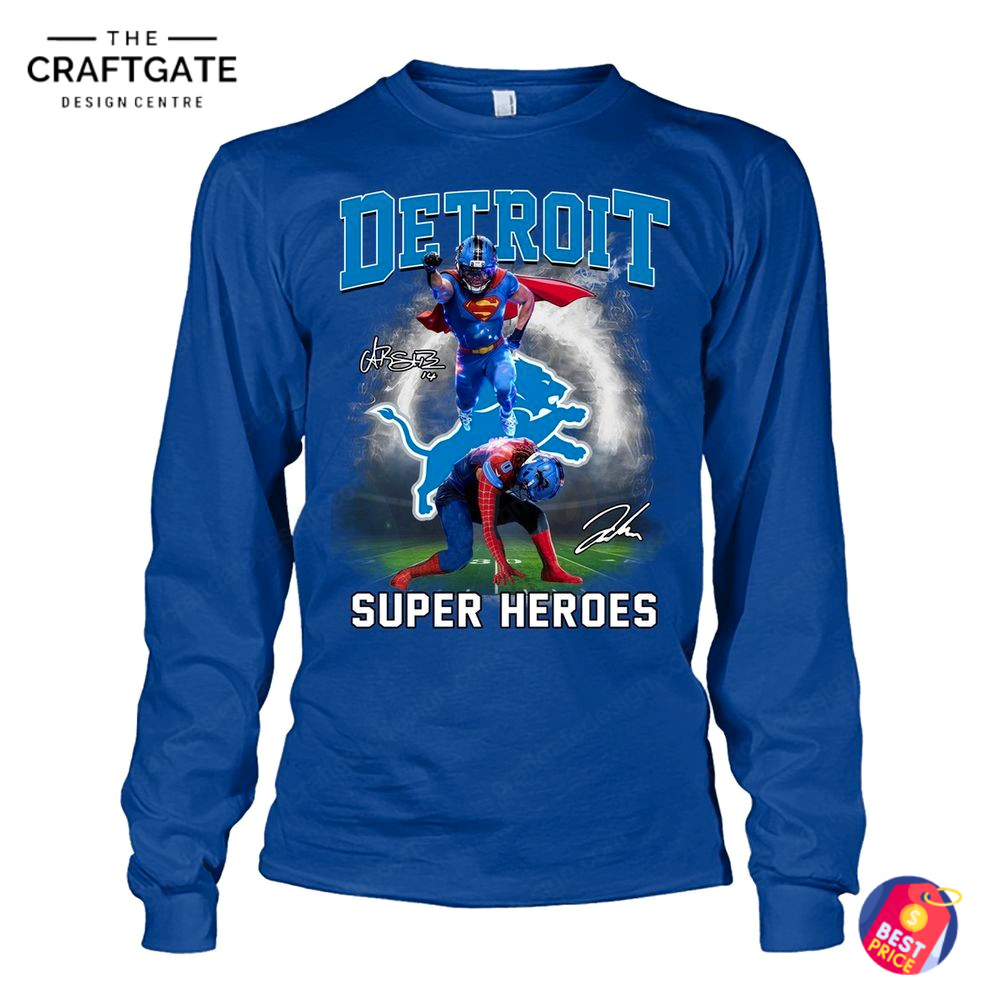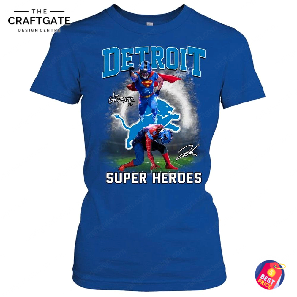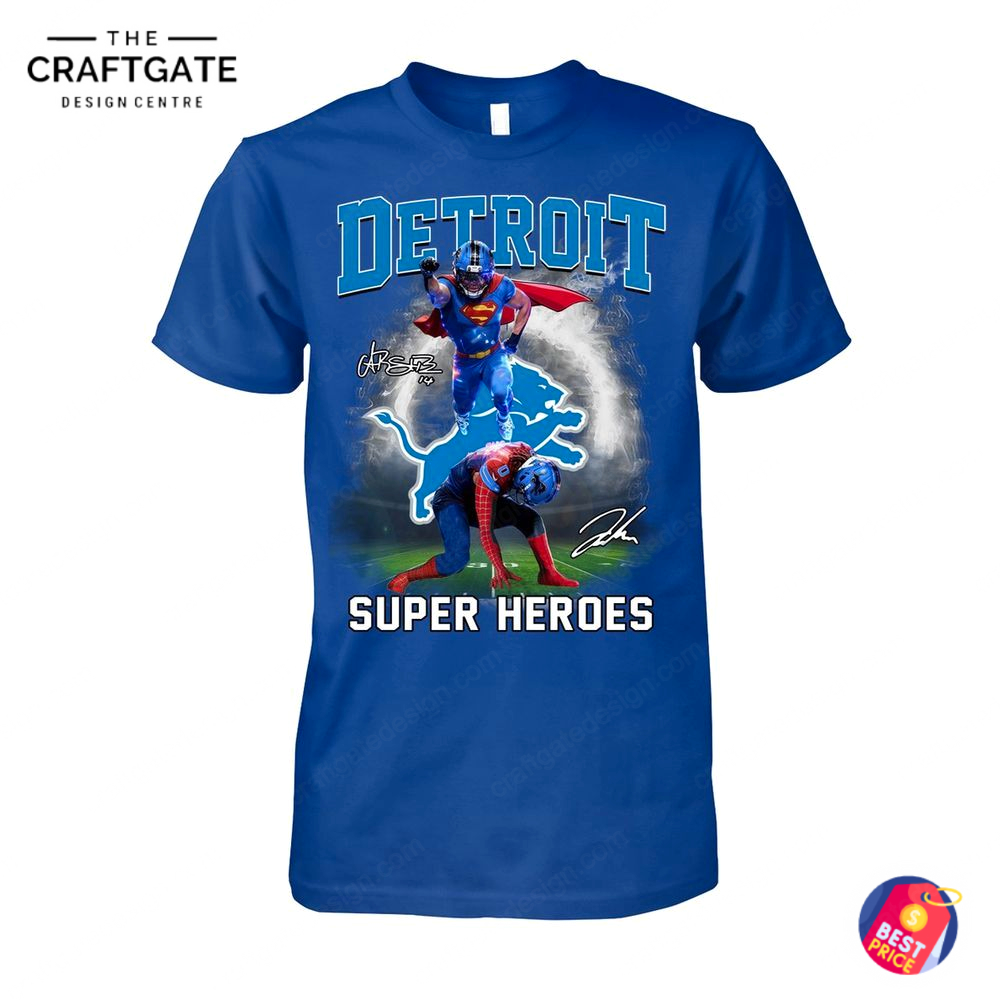 Wear your Detroit Lions 2025 Super Heroes T-Shirt to the game, your next watch party, or simply while showing your team pride around town. As the Detroit Lions charge towards a promising future, this officially licensed tee is a must-have for any dedicated fan. This limited-edition design makes it a true collectible. To keep your Detroit Lions 2025 Super Heroes T-Shirt looking its best, machine wash cold and tumble dry low. Don’t miss out – grab yours now and join the pride!