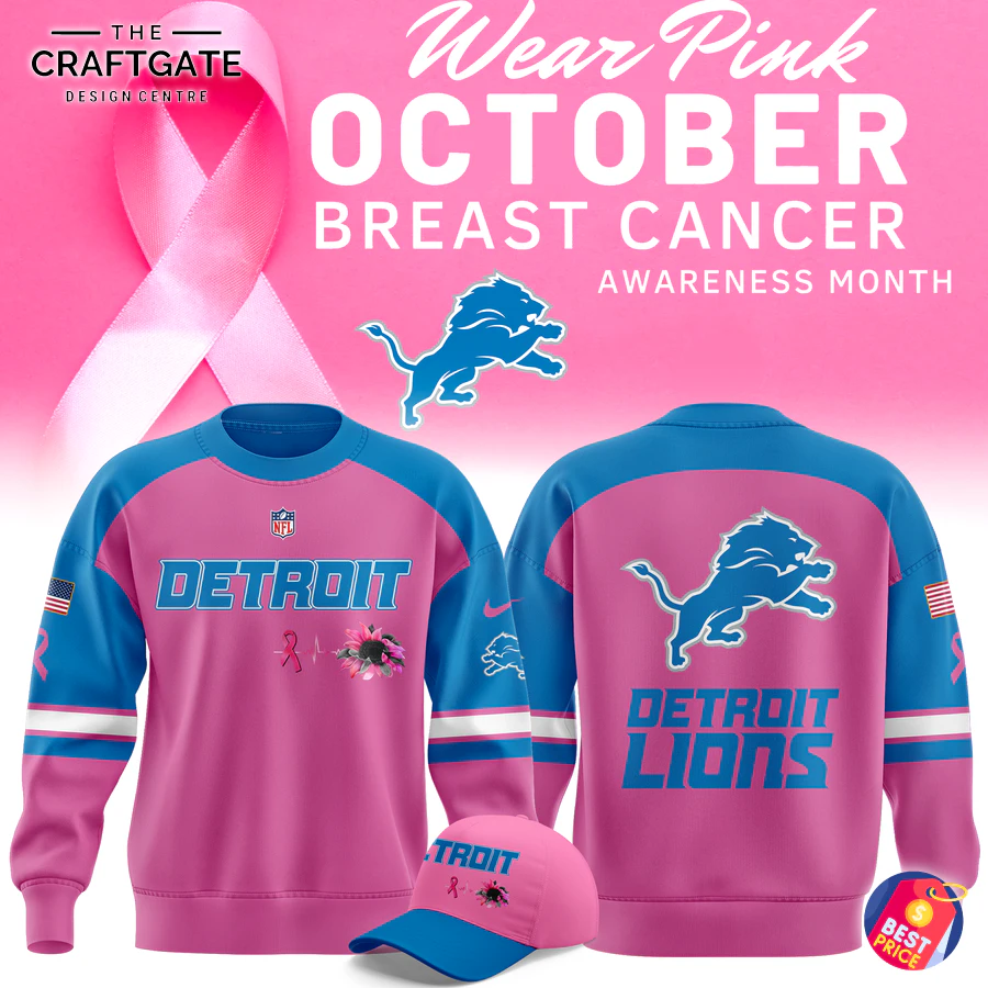 This special edition Detroit Lions Breast Cancer Awareness Hoodie 2025 is perfect for game days, charity walks, or simply showcasing your pride and support in everyday life. Every October, the NFL, including the Detroit Lions, dedicates itself to Breast Cancer Awareness Month, making this hoodie a meaningful way to participate in the movement and honor those affected. As an officially licensed NFL product, you can trust its authenticity and quality. To keep your hoodie looking its best, machine wash cold with like colors and tumble dry low. This is a limited-edition release for 2025, available only for a short period. Don’t miss your chance to make a statement and contribute to a cause that touches so many. Secure your Detroit Lions Breast Cancer Awareness Hoodie 2025 today and wear your heart on your sleeve. Your satisfaction is 100% guaranteed, backed by our hassle-free return policy.