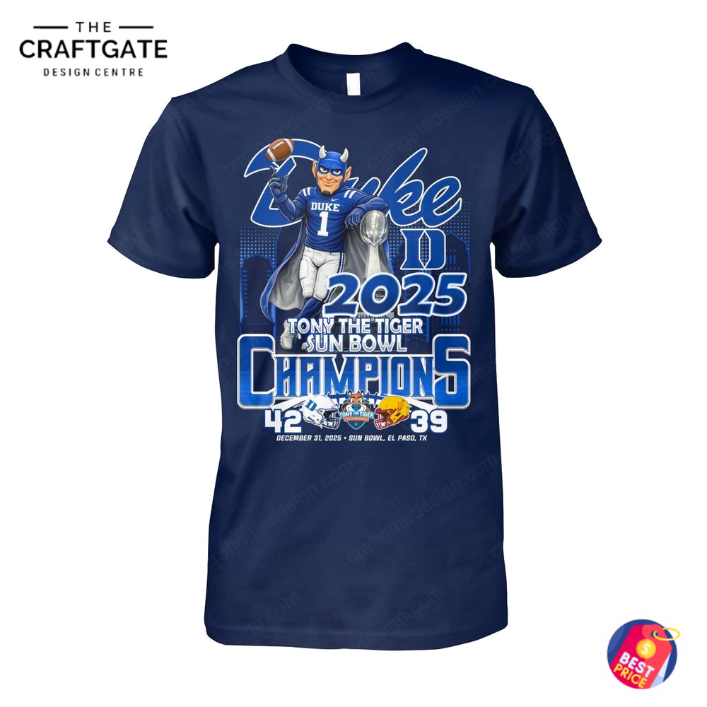 Official Duke Blue Devils 2025 Tony The Tiger Sun Bowl Champions T-Shirt – A Must-Have for True Fans