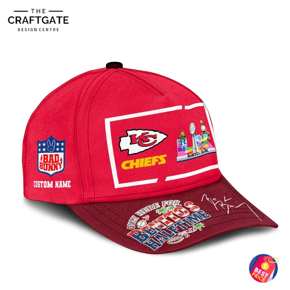 Perfect for game days, concerts, or adding a distinctive touch to your everyday style, this Kansas City Chiefs Only Here For Benitos Halftime Cap celebrates the Chiefs’ winning legacy with a unique twist. It’s a statement piece for fans appreciating both Super Bowl victories and global music sensations. A Bad Bunny inspired logo adorns the side, enhancing its custom appeal. To maintain its vibrant design, hand wash and air dry. This exclusive fan collectible is available for a limited time. Don’t miss out on owning this one-of-a-kind Kansas City Chiefs Only Here For Benitos Halftime Cap – grab yours today! We guarantee the quality of every Kansas City Chiefs Only Here For Benitos Halftime Cap and offer a hassle-free return policy.