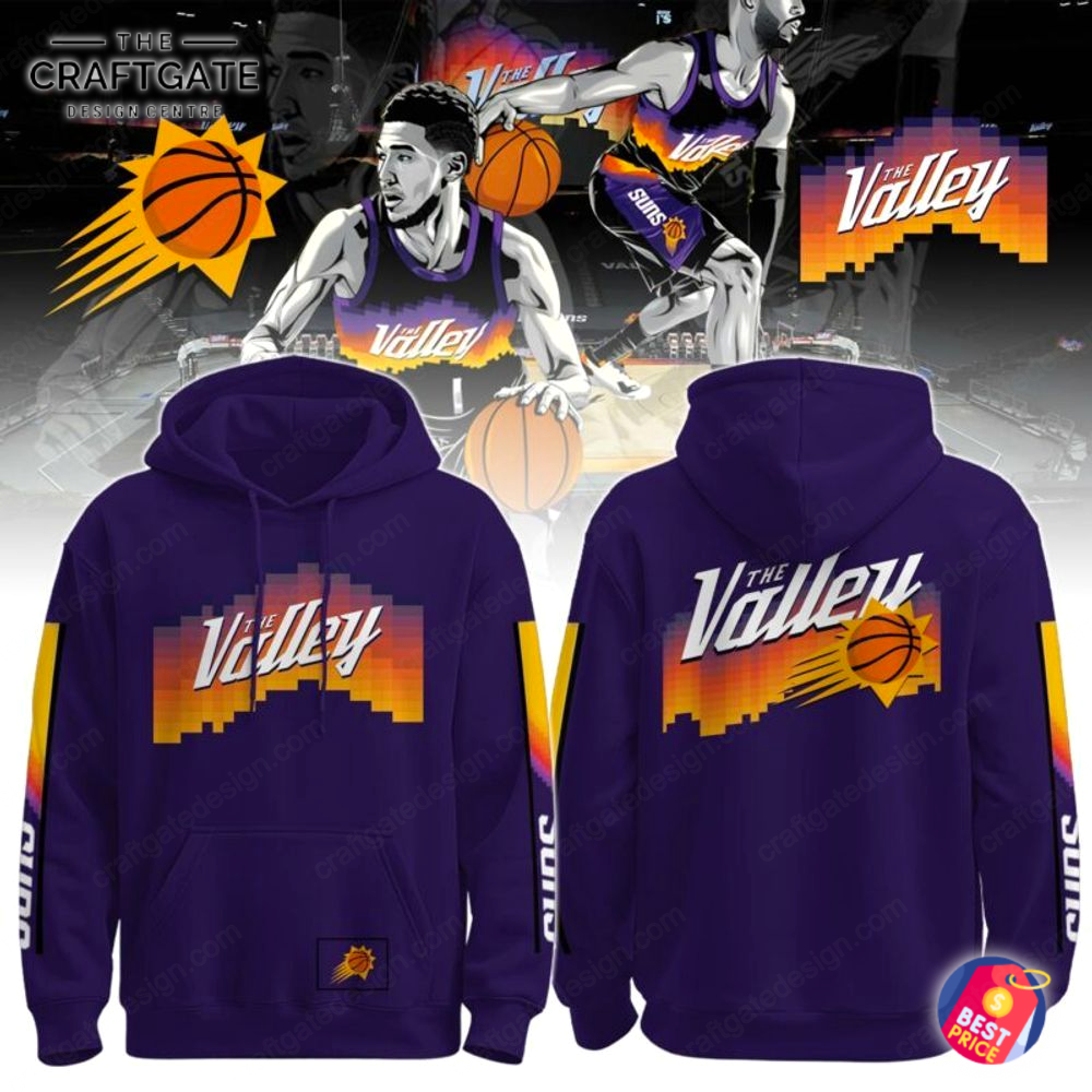 Feel the passion of Suns nation every time you wear the Phoenix Suns 2025 The Valley New Hoodie, a collectible that captures the heart and soul of the team’s most memorable season. This hoodie features striking front and back graphics: the front showcases the iconic Suns emblem embroidered prominently on the chest, while the back depicts a bold “The Valley” design with dynamic sunset imagery that symbolizes Phoenix’s vibrant spirit. Crafted from high-quality, soft cotton-blend fabric, this hoodie offers a comfortable fit with a stylish weight that’s perfect for fan gatherings or everyday wear. Dimensions are designed to suit most fans, measuring approximately 28 inches in length and 22 inches across the chest for a snug, yet relaxed feel.