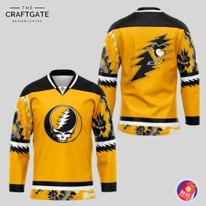 Unite your passion for hockey and legendary music with this Official, Limited Edition Pittsburgh Penguins Grateful Dead Night 60th New Style Hoodie. This striking collectible is a vibrant fusion, featuring the iconic Grateful Dead Steal Your Face skull integrated with the Pittsburgh Penguins logo on the front, encircled by “PITTSBURGH PENGUINS” and “GRATEFUL DEAD” text. The design boasts a dynamic black and yellow tie-dye base. On the back, a playful, tie-dye colored Grateful Dead Dancing Bear, stick in hand, takes center ice below vibrant “Penguins” text. Sleeves are adorned with a parade of colorful Grateful Dead Dancing Bears, completing this unique visual journey. Crafted from 100% premium polyester, this hoodie offers a lightweight feel with a soft, cozy fleece lining for ultimate comfort.